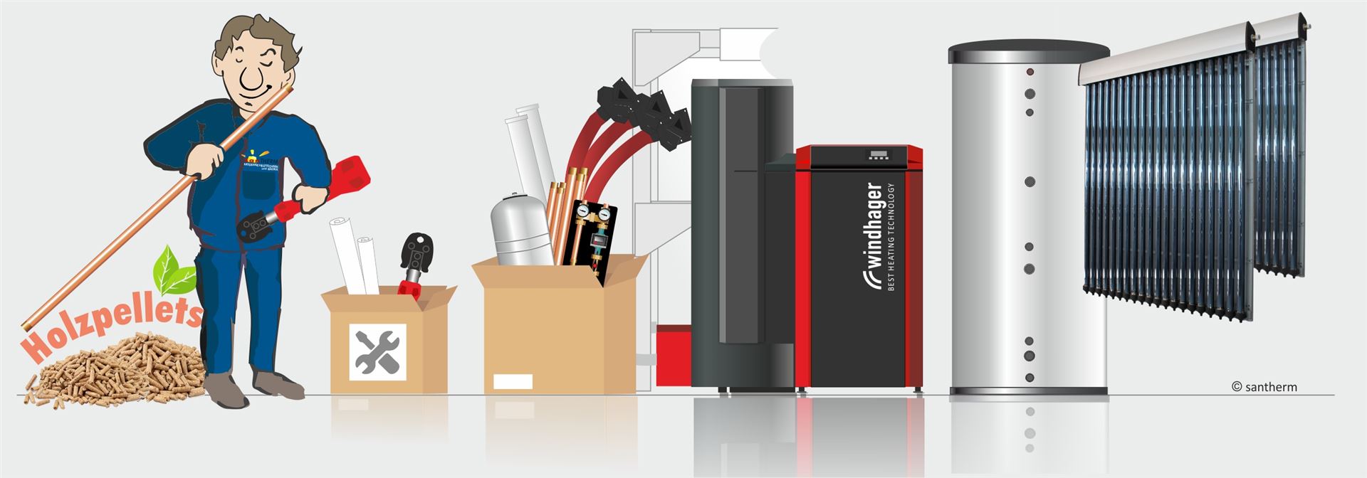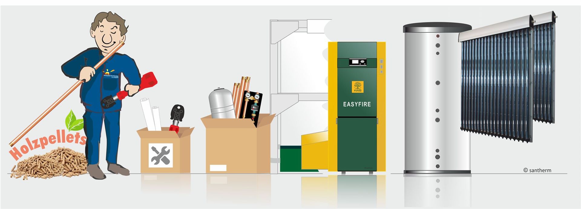 Heizungsmodernisierung mit einem Pelletessel und einer thermischen Solaranlage für Warmwasser und Heizung